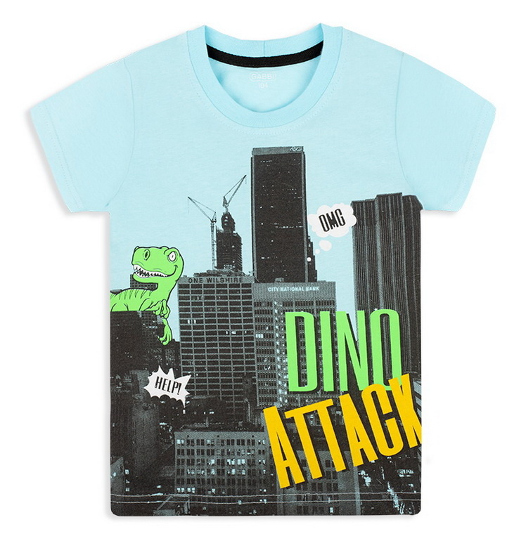 Летняя футболка с забавными динозаврами, которые врываются в нашу повседневную жизнь, ну очень понравятся подвижным и мега активным мальчикам. Каждая модель футболки имеет свой цвет и дизайнерское оформление. Носить данную футболку можно в сочетании с шортами или бриджами.